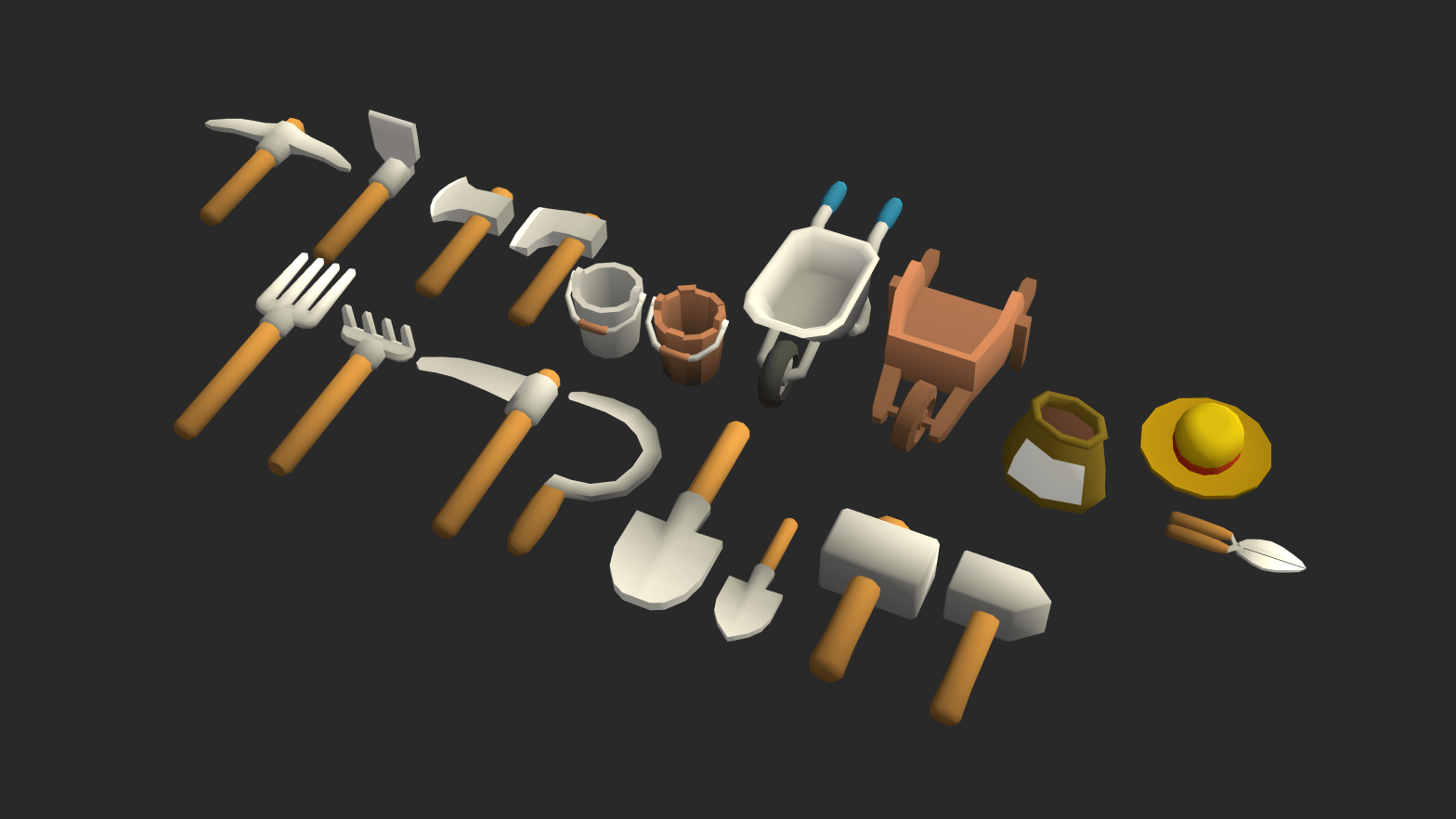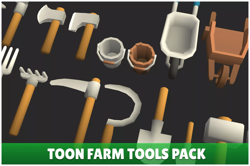 👨🏻🌾This package includes 19 models and prefabs (farm tools, wheelbarrows, buckets, sacks and other).